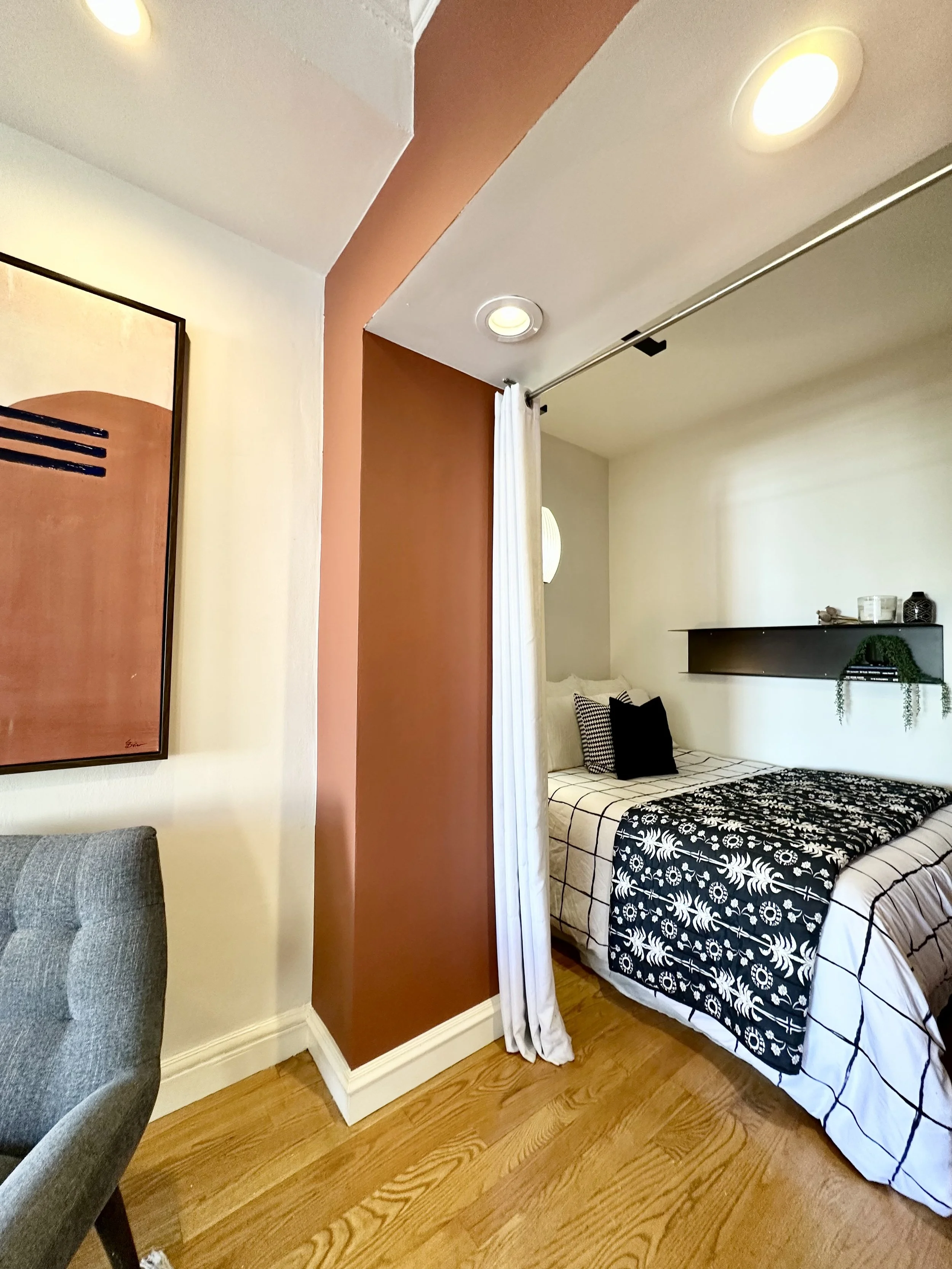 The best of urban life is here in Hayes Valley. This 1929 Renaissance Revival condo was smartly renovated to include custom designer lights and modern recessed lighting. The home has a big living room, recessed sleeping alcove, and enough room in the kitchen for a banquette and table. Vintage architecture includes tall windows overlooking peaceful Lily Street, and an ample bathroom with art-deco tile and pedestal sink. The home is in the middle of the universe if you like world class food, entertainment, gym, laundry and everything else the city has to offer. Commuters can jump on any local freeway with ease and leased parking is available. Come see how the Barcelona in Hayes Valley is ready for your future.